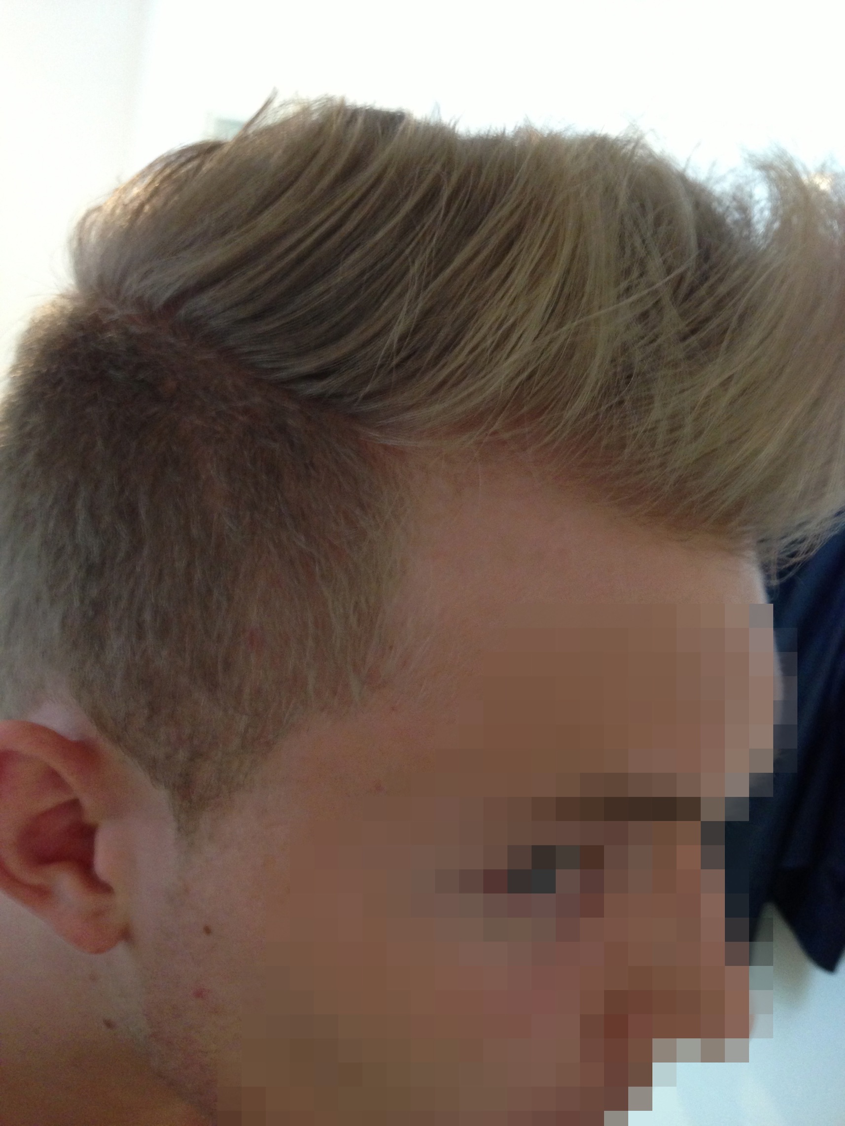 Anzumerken ist noch, dass ich trockene Kopfhaut habe. Vermutlich damit verbunden bekomme ich wenige kleine rote Pünktchen, die an den Seiten zu sehen sind. Mein Haaransatz am Nacken war früher wie für Neurodermitis typisch etwas rot. Habe das jedoch mit einem milden Shampoo und einen feuchtigkeitsspendendem Tonikum in den Griff bekommen. Haare fallen mir kaum aus. Meine Ernährung ist gesund und ich treibe viel Sport.