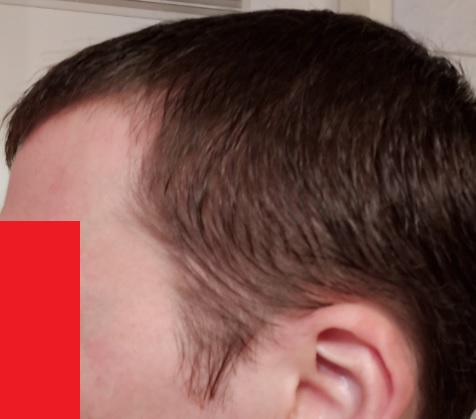 Falls ich bei fin schlimme Nebenwirkungen erleiden sollte, könnte ich mir das vorstellen. Aber wenn es irgendwie geht, würde ich gerne auf topische Behandlung verzichten. Das stelle ich mir schon sehr nervig vor. Hier noch mal eine Seitenansicht auf den Problembereich. Ich habe es nach dem Duschen versucht so unvorteilhaft wie möglich zu kämmen, aber die Haare liegen einfach so über dem Bereich und lassen sich nicht hochkämmen. Das Problem sollte aber sichtbar sein.