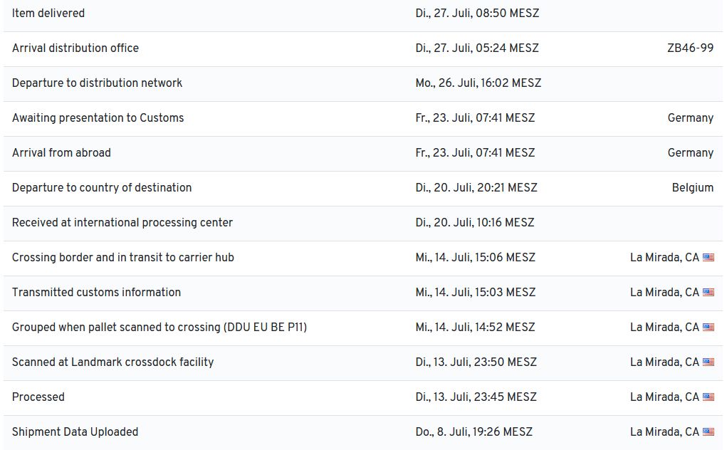 Die Ware ist bis heute nicht angekommen. Die Sendungsverfolgung hört in Deutschland auf und ist bis heute Tod.