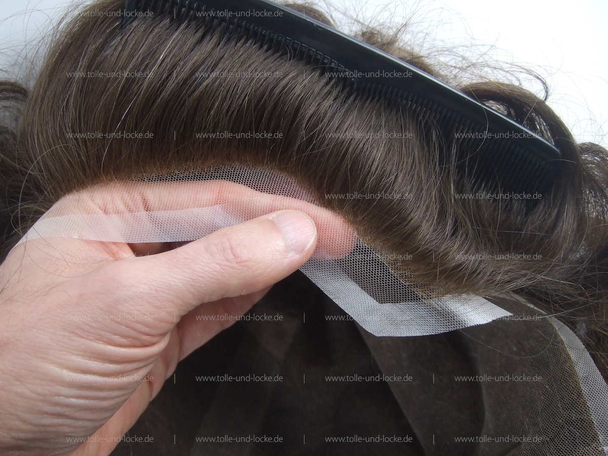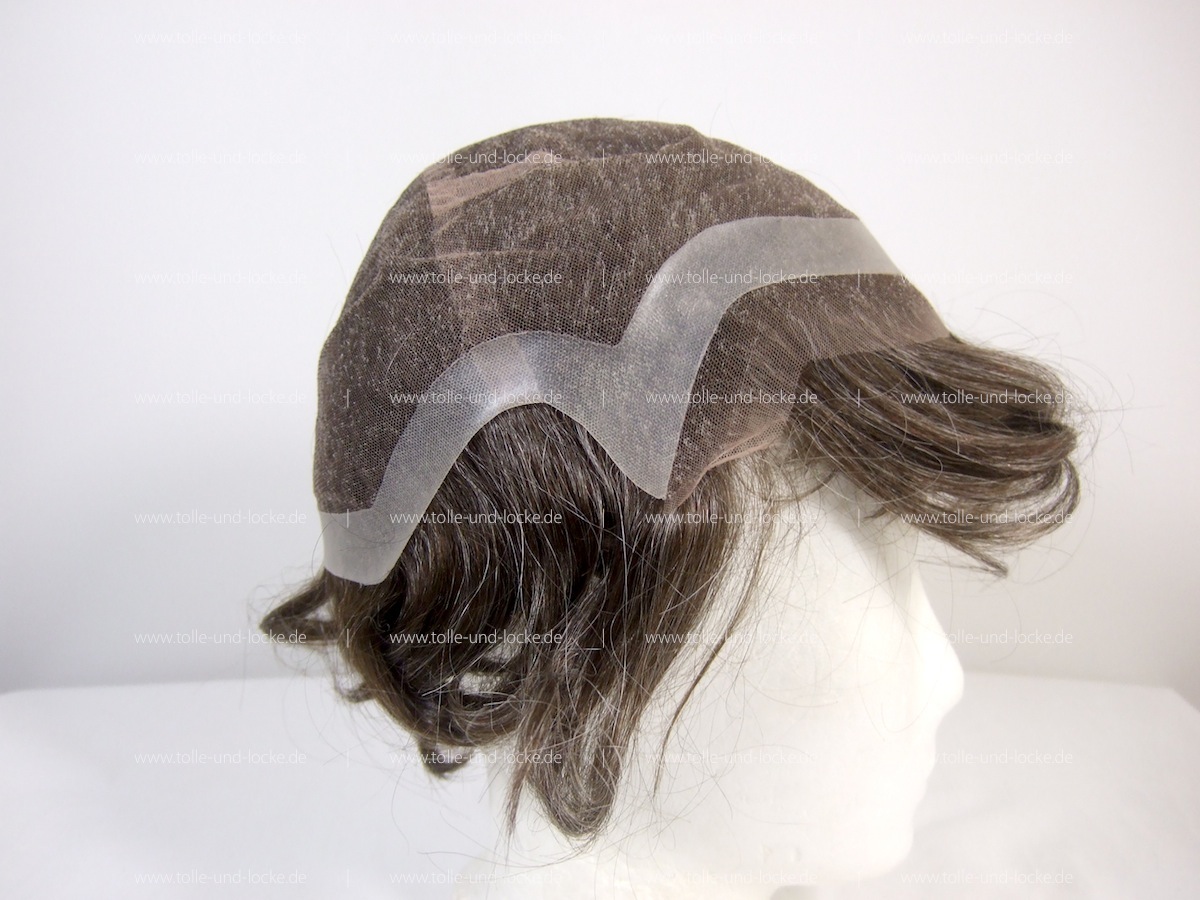Swiss Lace + extra Mono. Etwas von der Front nach hinten versetzt. Solch ein Base Design hat für (sehr) aktive Freizeitsportler Vorteile hinsichtich Verklebung & Co. Ohne auf die Vorzüge von Netz zu verzichten.