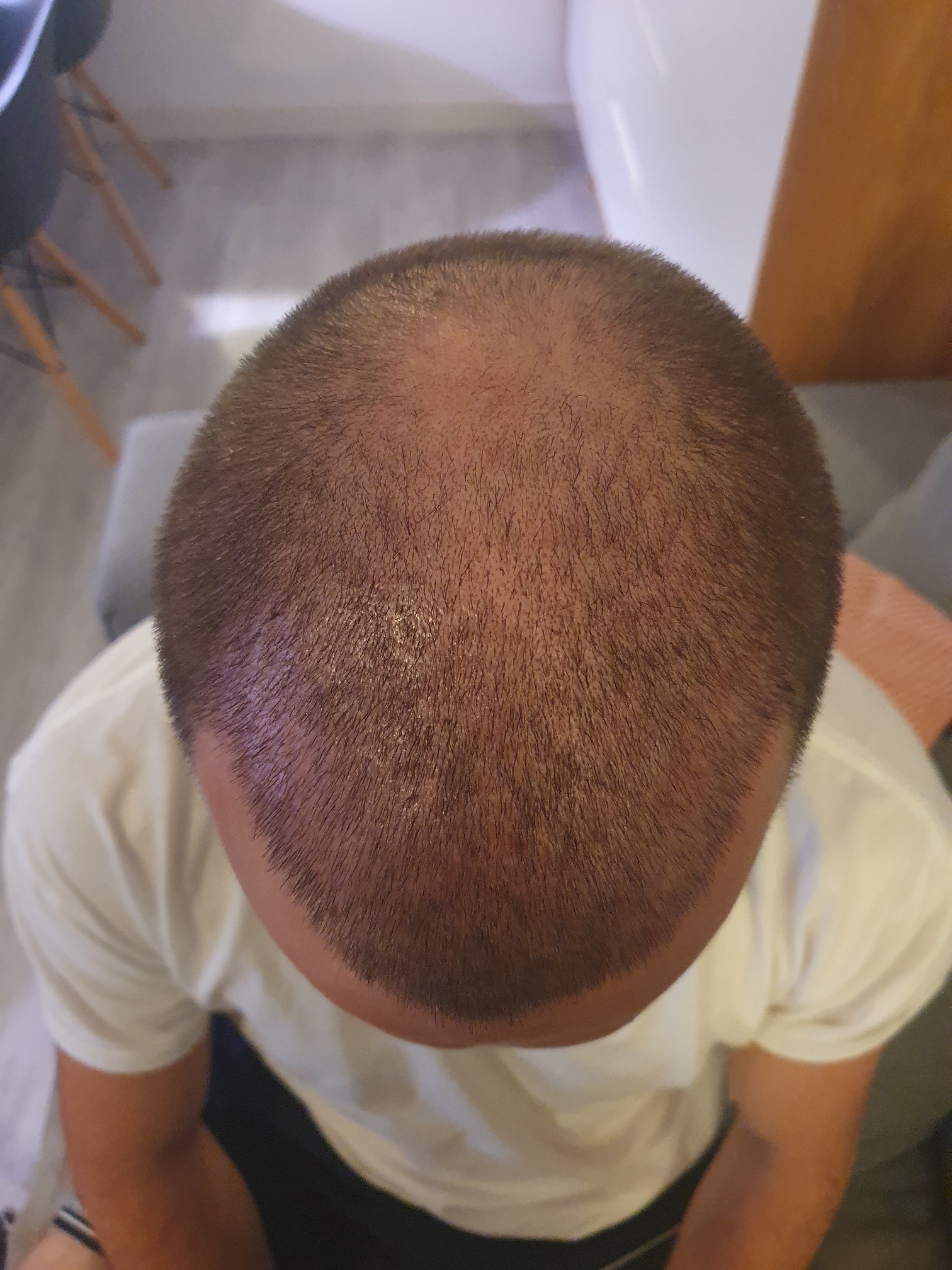 ich hatte im September 2020, also vor sechs Monaten, eine Haartransplantation im vorderen Bereich. Lief und läuft denke ich alles sehr gut soweit. Nach der OP habe ich dann angefangen, meinen Tonsurbereich zwei mal täglich mit Minoxidil (Regaine Schaum) zu behandeln. Damit habe ich mir erhofft, dass ich meine zweite Haartransplantation für die Tonsur soweit wie möglich nach hinten schieben kann.