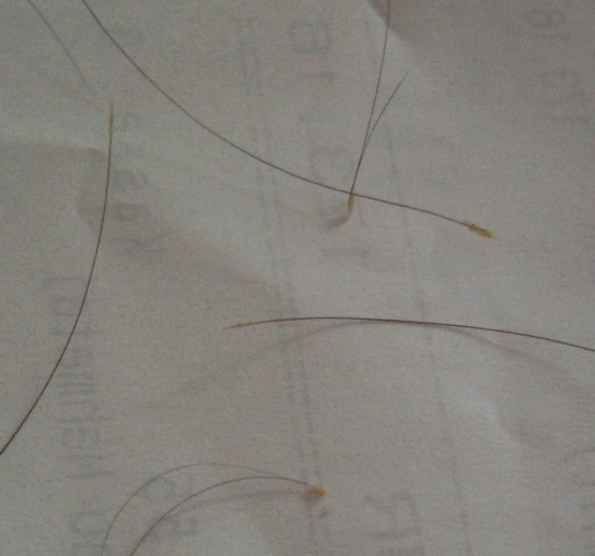 Habe auch ein foto von ein paar ausgefallenen haaren gemacht, wollt wissen ob hier se erkrankte auch solche haarwurzeln bei sich beobachtet haben.