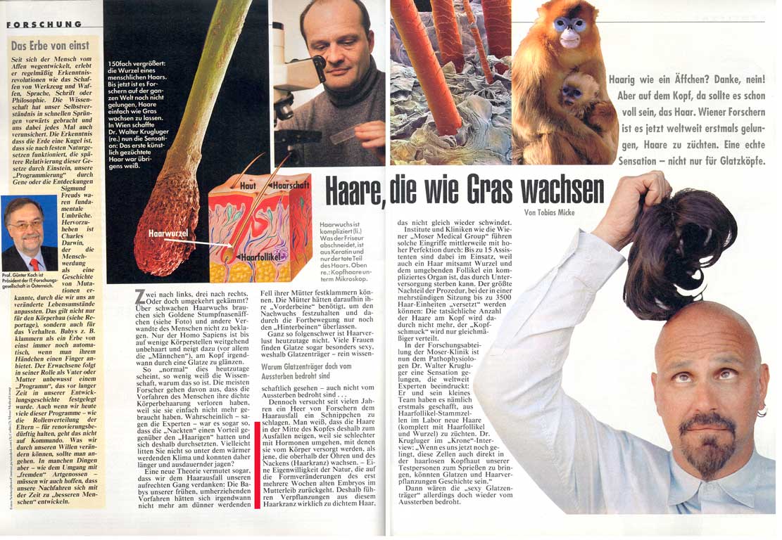 In der Biotechnologie erhielt die Moser Medical Group den Platinum Follicle Award.Inwieweit Profitiert die Eigenhaarverpflanzung von diesen Ergebnissen??Am Sonntag dem 5 März 2006 soll es in der "Krone Bunte"erscheinen.
