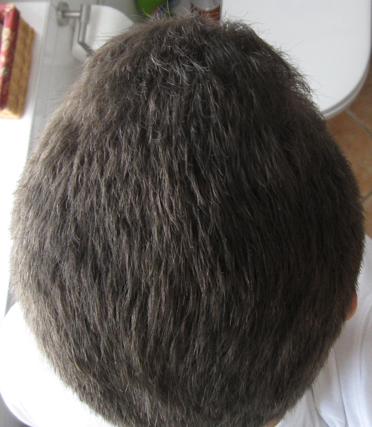 Mittlerweile liege ich schätzungsweise wieder bei erfreulichen 80% (an der Front) und 90% (an der Tonsur). Womit ich wirklich total glücklich und zufrieden bin!