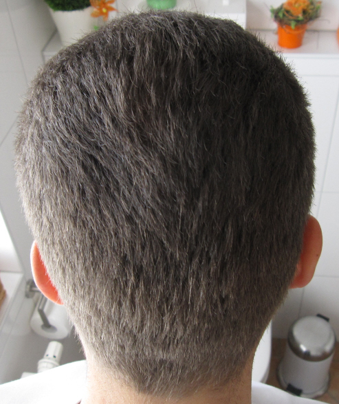 Mittlerweile liege ich schätzungsweise wieder bei erfreulichen 80% (an der Front) und 90% (an der Tonsur). Womit ich wirklich total glücklich und zufrieden bin!