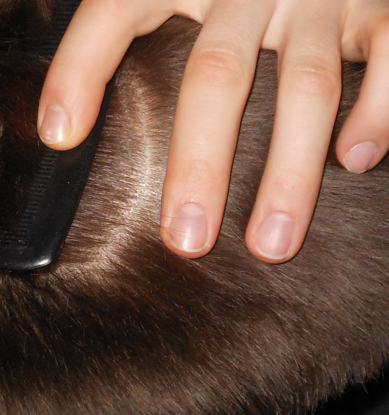 Mein Mittelscheitel ist gleich dicht wie die Seiten und der Rest vom Oberkopf.