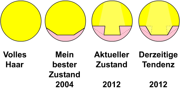 Um abzuschätzen, wohin sich das ganze bewegt (vorausgesetzt es geht so weiter wie bisher), habe ich das unten angefügte Bild angefügt (selbst gezeichnet). Von Geburt an habe ich eine hohe Stirn werde also nie NW0 erreichen.