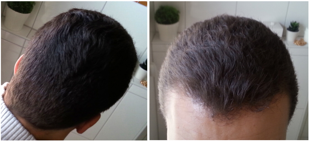 Die Ergebnisse sind wirklich gut. Selbst im Bereich der Schläfen hat es sich verdichtet und es sieht alles nach einem schönem dichtem Haarrahmen ohne Lichtung aus. Die GHE fallen absolut nicht negativ auf.