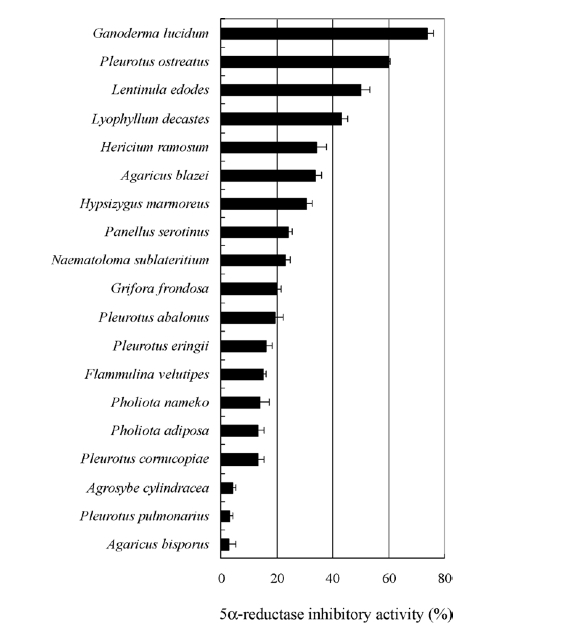 Nicht nur im Reagenzglas. Dass die Inhaltsstoffe einiger Pilze die 5AR hemmen und gut bioverfügbar sind beweist diese Studie. Dem Futter von Ratten wurden Extrakte bzw. Pulver (0,3%) des Pilzes Ganoderma lucidum zugefügt, was zu einer signifikanten Verkleinerung der Prostata bei den Tieren führte.