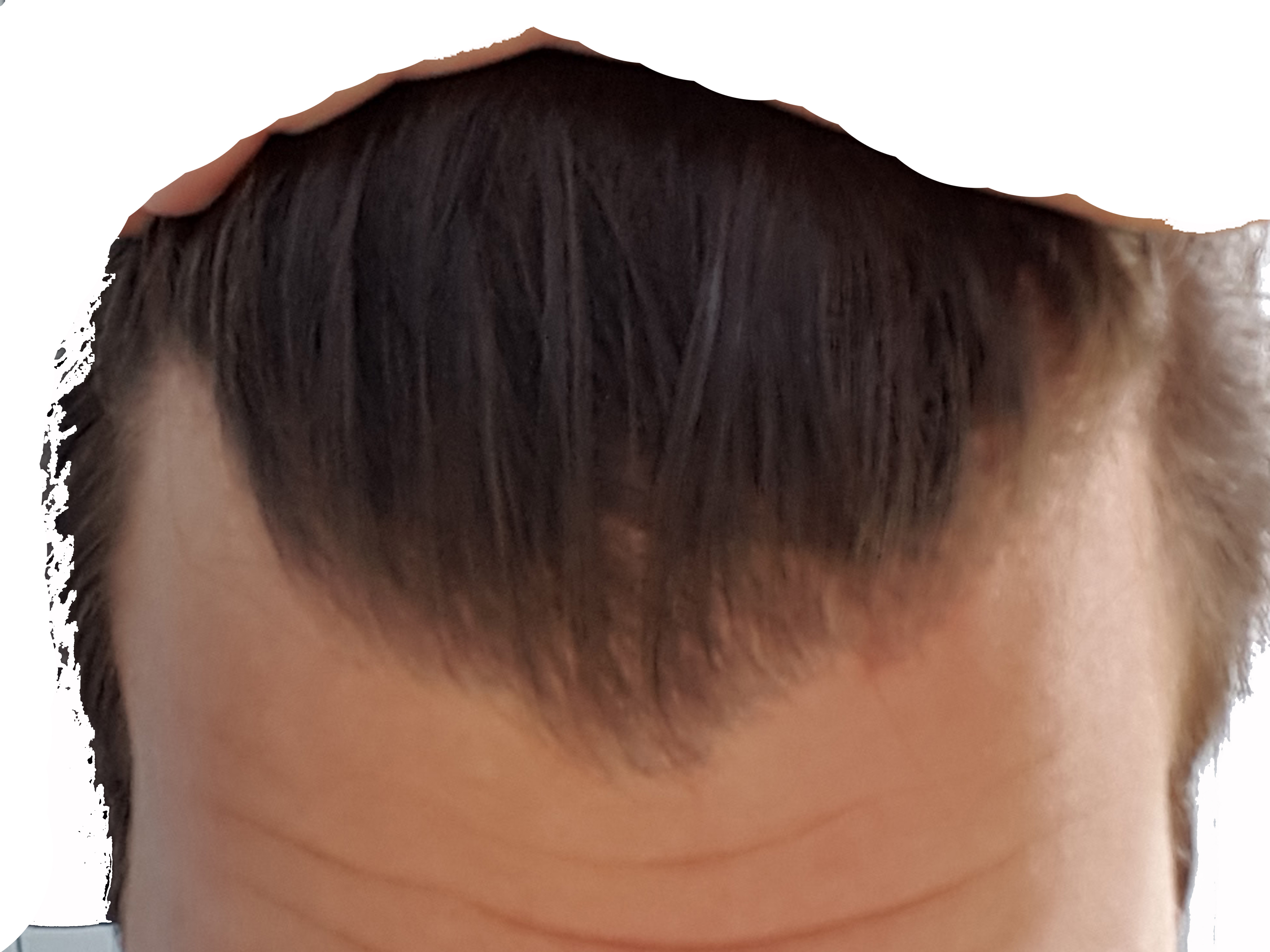 Kannst du mal n Foto machen, Haare nass von oben. Kamera einen Meter Abstand vom Kopf?