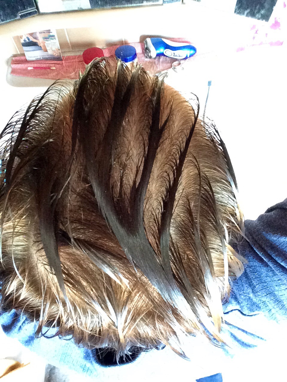 Hier noch von vorne und Draufsicht. Eher ungünstigeres Licht, somit lichteres Haar...