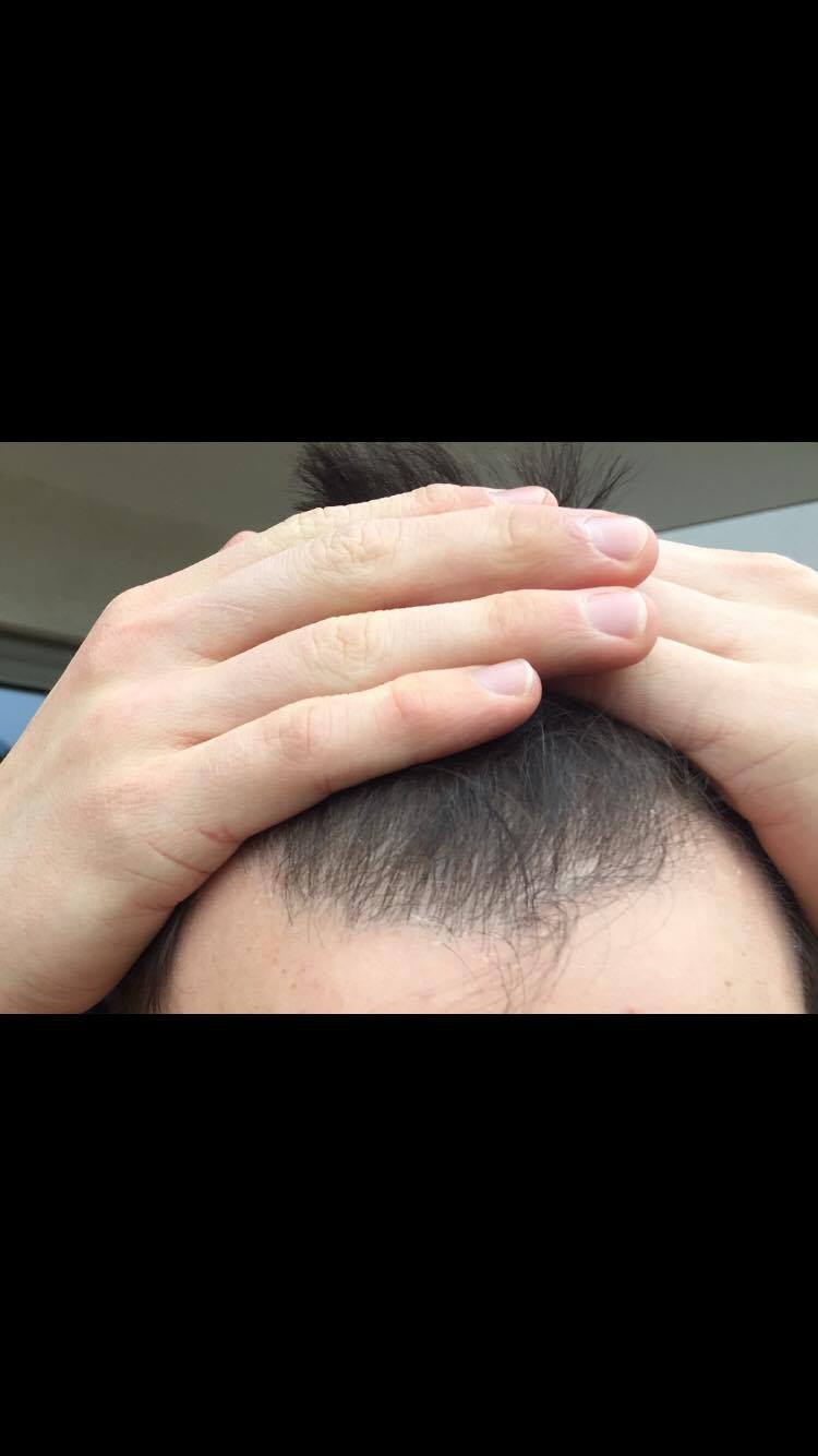 Tonsur sieht noch sehr ordentlich aus und könnte wieder einen normalen Status erlangen unter den Mitteln. Wenn du die Haare der Front zurück ziehst sieht man deutlich das du eine Stirnglatze schon sehr ausgeprägt ist, bis auf die Haare die in der Front noch stehen und das ein wenig Kaschieren.