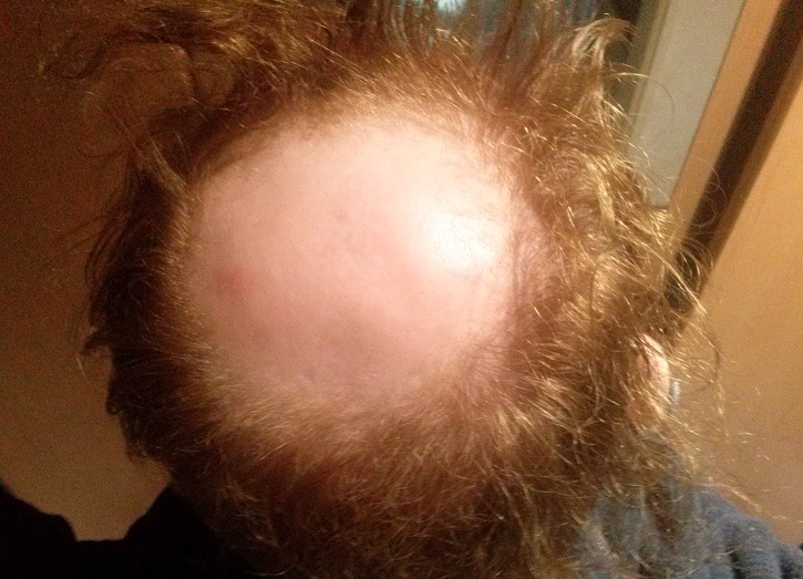Danke für das Bild Norwood, ich finde das echt faszinierend, dass deine Tonsur garkeine Haare mehr hat. Ist schon echt ungewöhnlich. Funzt das mit der Kakaocreme denn immer noch? Sehe jetzt aber auch keine wirkliche Verschlechterung zu früher. Die Haare vorne scheinen bei dir ja auch noch normal zu wachsen.