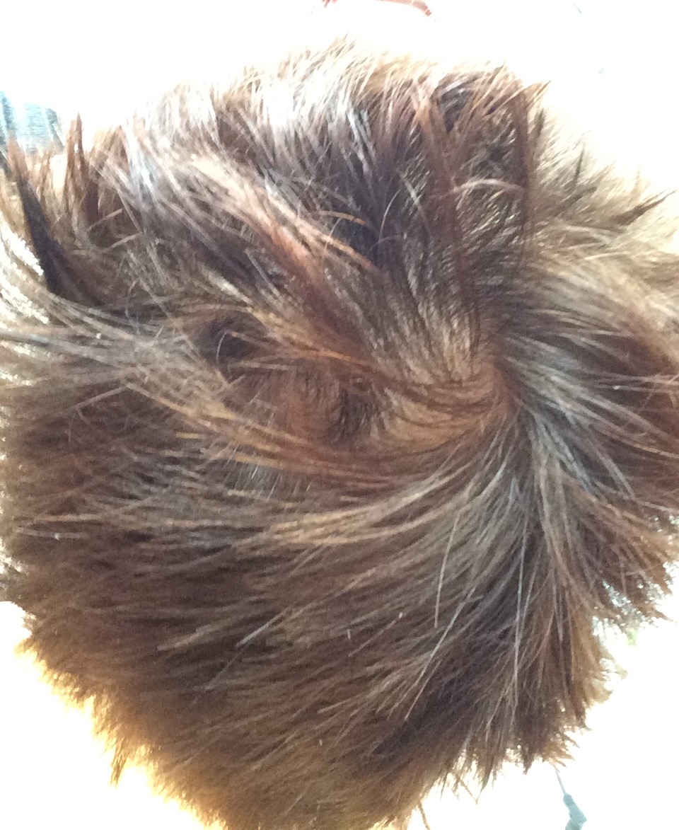 Da ich eine neue Frisörin habe, hat dir mir heute die Haare so geschnitten, dass meine besagten lichten "Alopezie-Wirbel" nicht mehr sichtbar sind.
