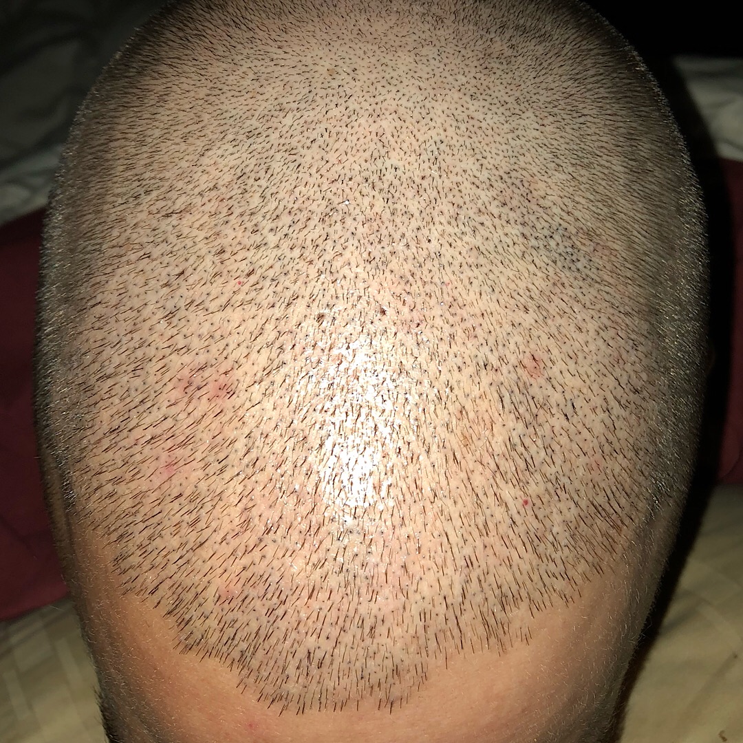 Ich habe mein Haar nur für die Mikrohaarpigmentation kurz rasiert, dass der Pigmentierer genauer arbeiten kann. Die Mikrohaarpigmentation mach ich zur Ergänzung der nächsten Haartransplantation um ein dichterwirkenderes Ergebnis zu erhalten.