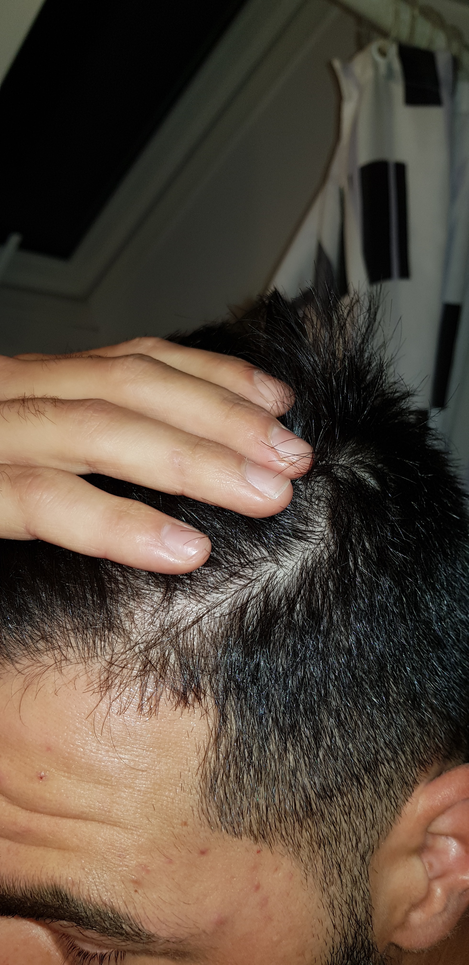 Termin beim Doc kann nicht schaden. Das einzige was ich vll empfehlen könnte bei dir ist Ket Shampoo da es am Oberkopf etwas weiß / vertalgt / schuppig wirkt aber dazu kann der Arzt auch genaueres sagen