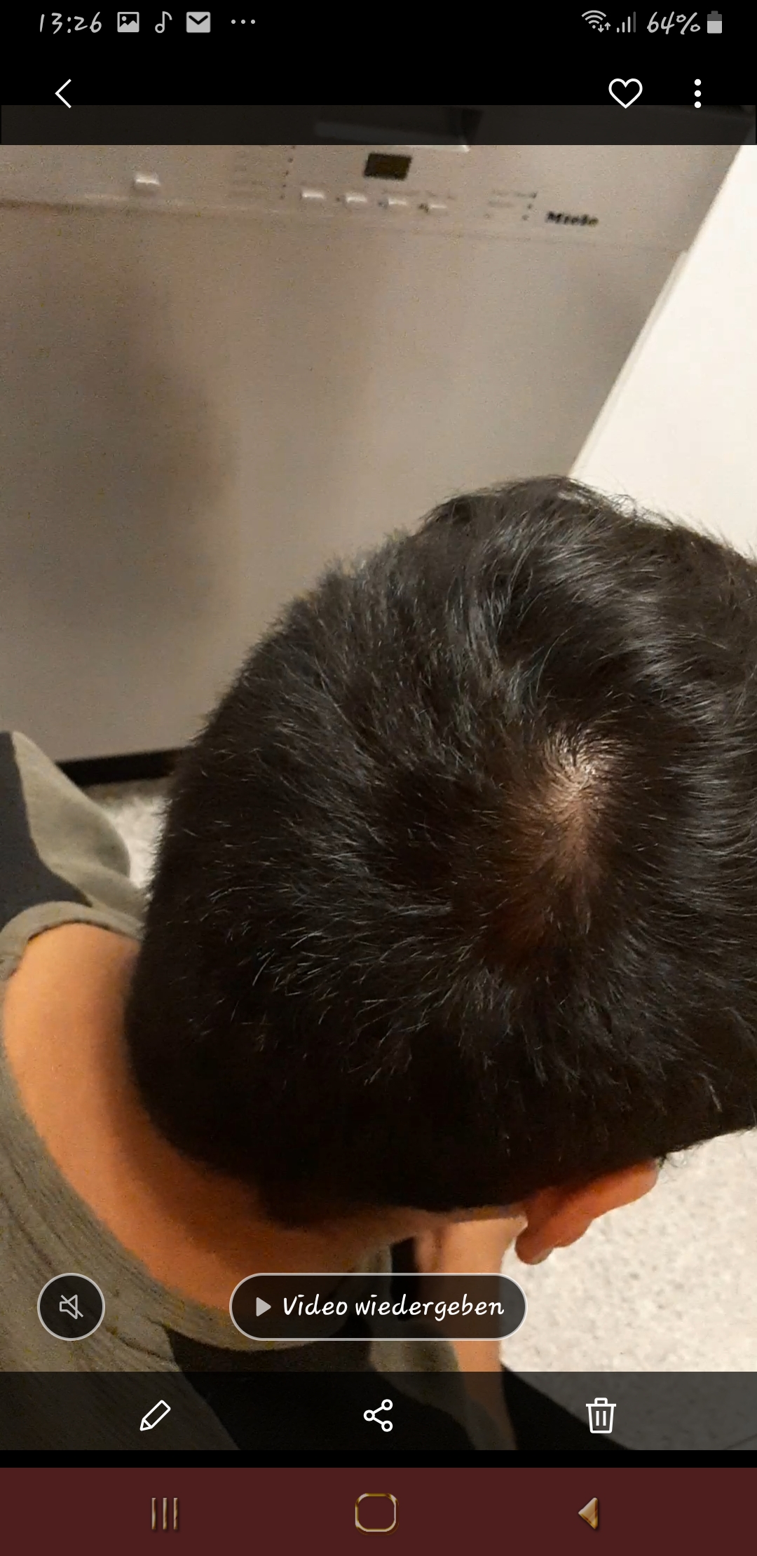 Deine Haare sehen gut aus, denke das ist nur ein ungünstiger Wirbel plus Lichteinfall. Sind meines Erachtens auch keine ghe erkennbar.