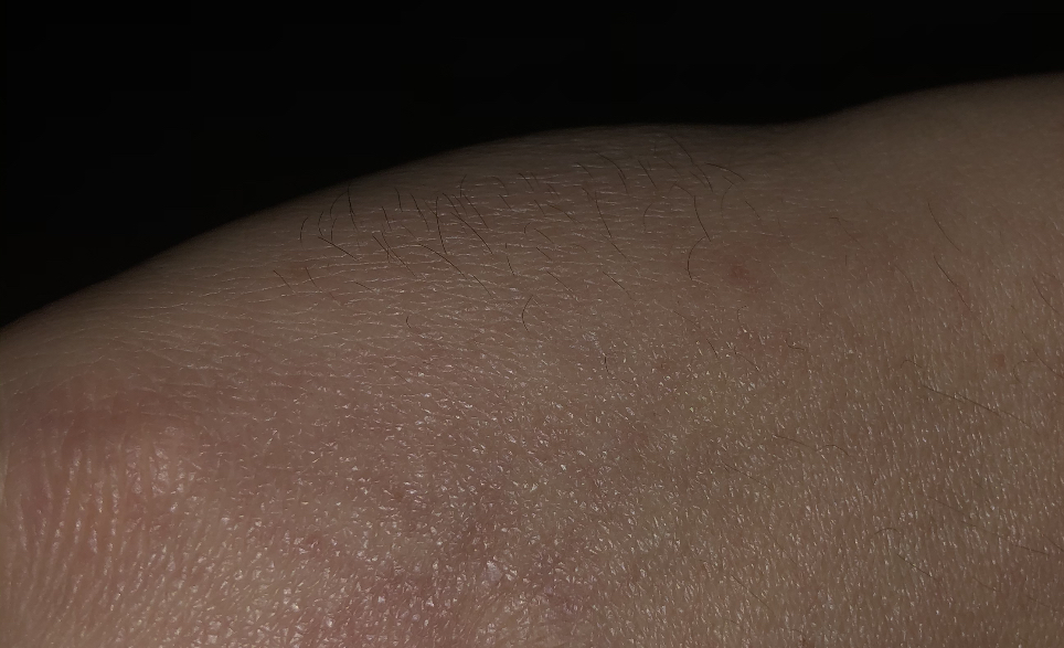 Hand: kaum noch was da und die Poren glänzen und sagen Adios,