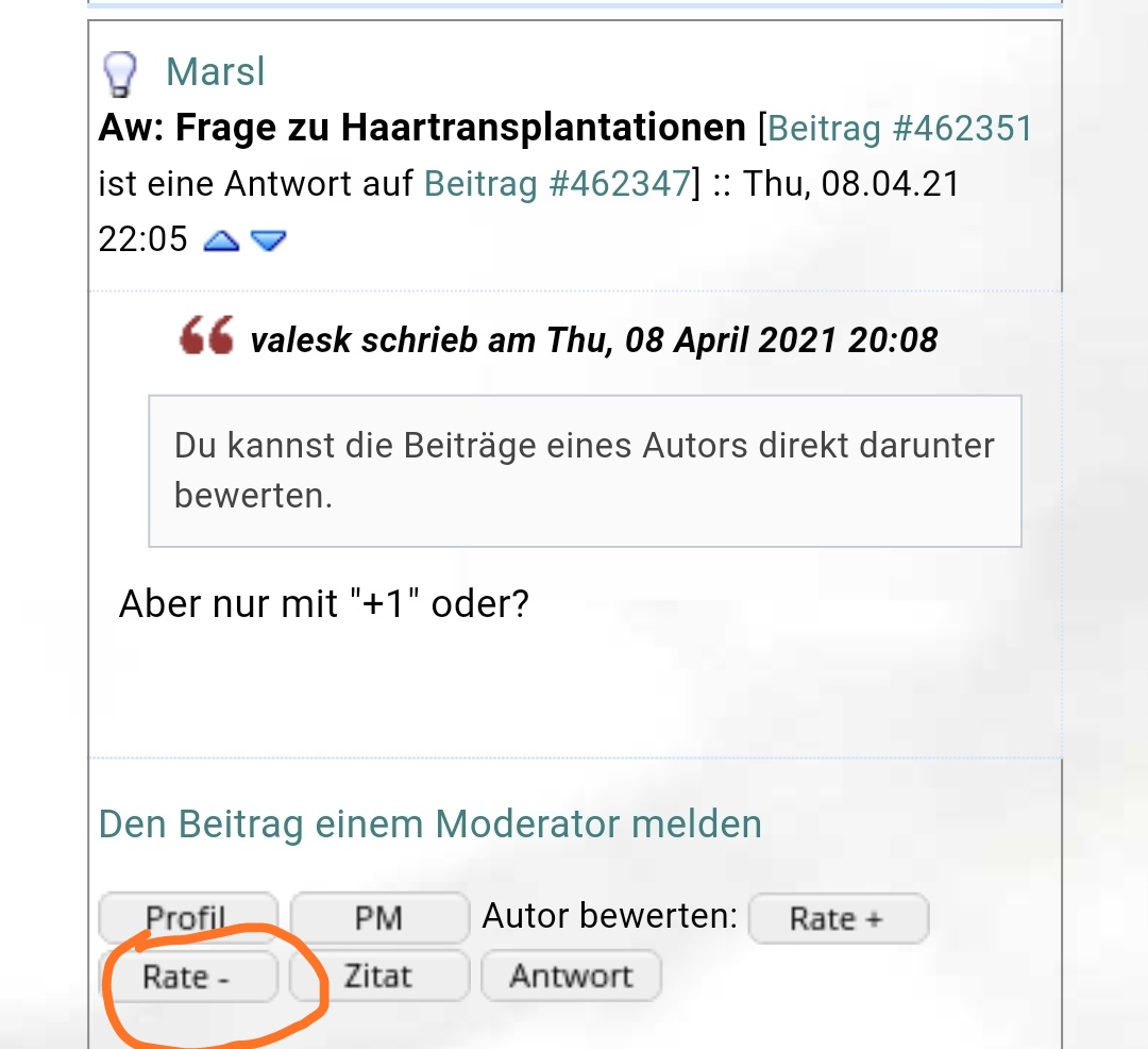 Aw: Frage zu Haartransplantationen [Beitrag #462334 ist eine Antwort auf Beitrag #462325] :: Do., 08 April 2021 14:23 Zum vorherigen Beitrag gehenZum nächsten Beitrag gehen