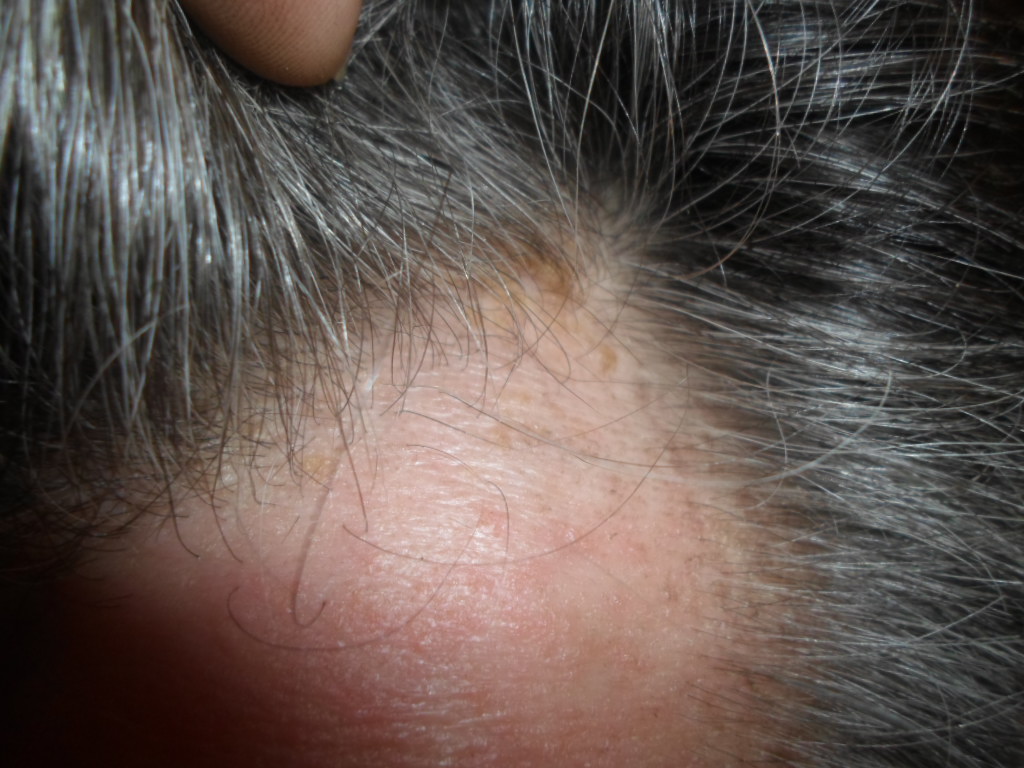 Überall wo ich Rötungen,Schuppen usw. habe ,dünnen die Haare aus,bzw. fallen sie vermehrt aus.Auf dem Oberkopf,Hinterkopf, sogar an den Schläfen.Aber es regeneriert sich immer wieder ! Vielleicht wäre mein Haar noch etwas voller ohne diesen ganzen Mist , kann sein, trotzdem NW 1 mit fast 46.