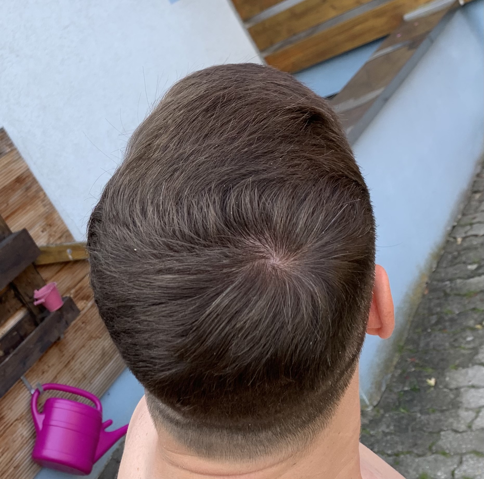 Es bräuchte mal ein anständiged Vorher Bild - sehe nur einen Wirbel an der Tonsur.