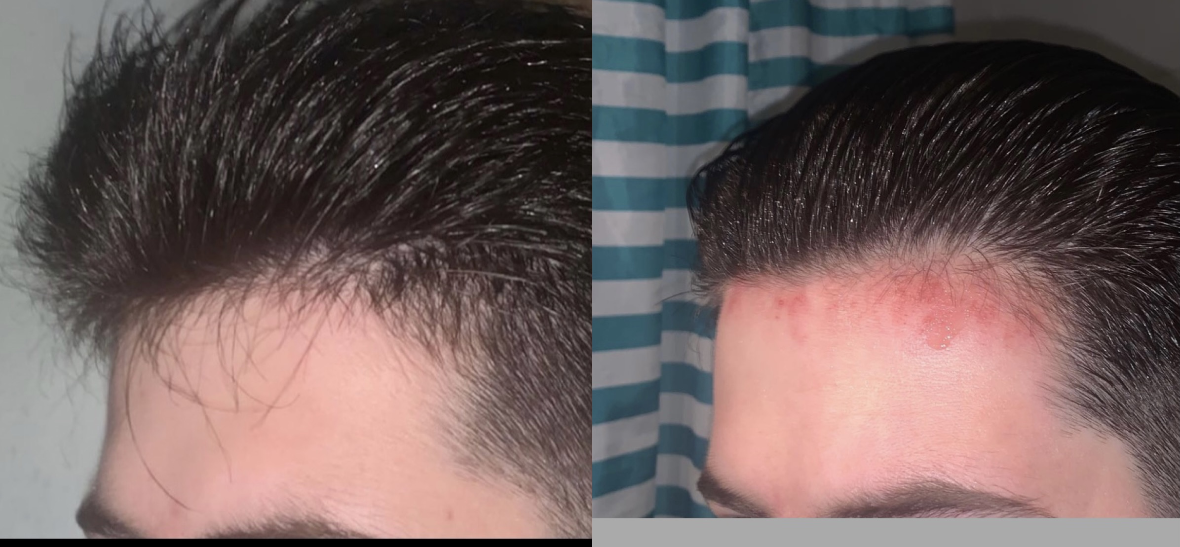Habe jetzt mal ein Vergleichsbild gemacht. Links ist Juli 2021 ( "Bewerbungsfoto" für myspring wegen Verschreibung von Fin). Rechts ist von heute. Haare sind halt nass und komplett nach hinten gekämmt um nix zu vertuschen. Die roten Stellen sind vom Microneedling.