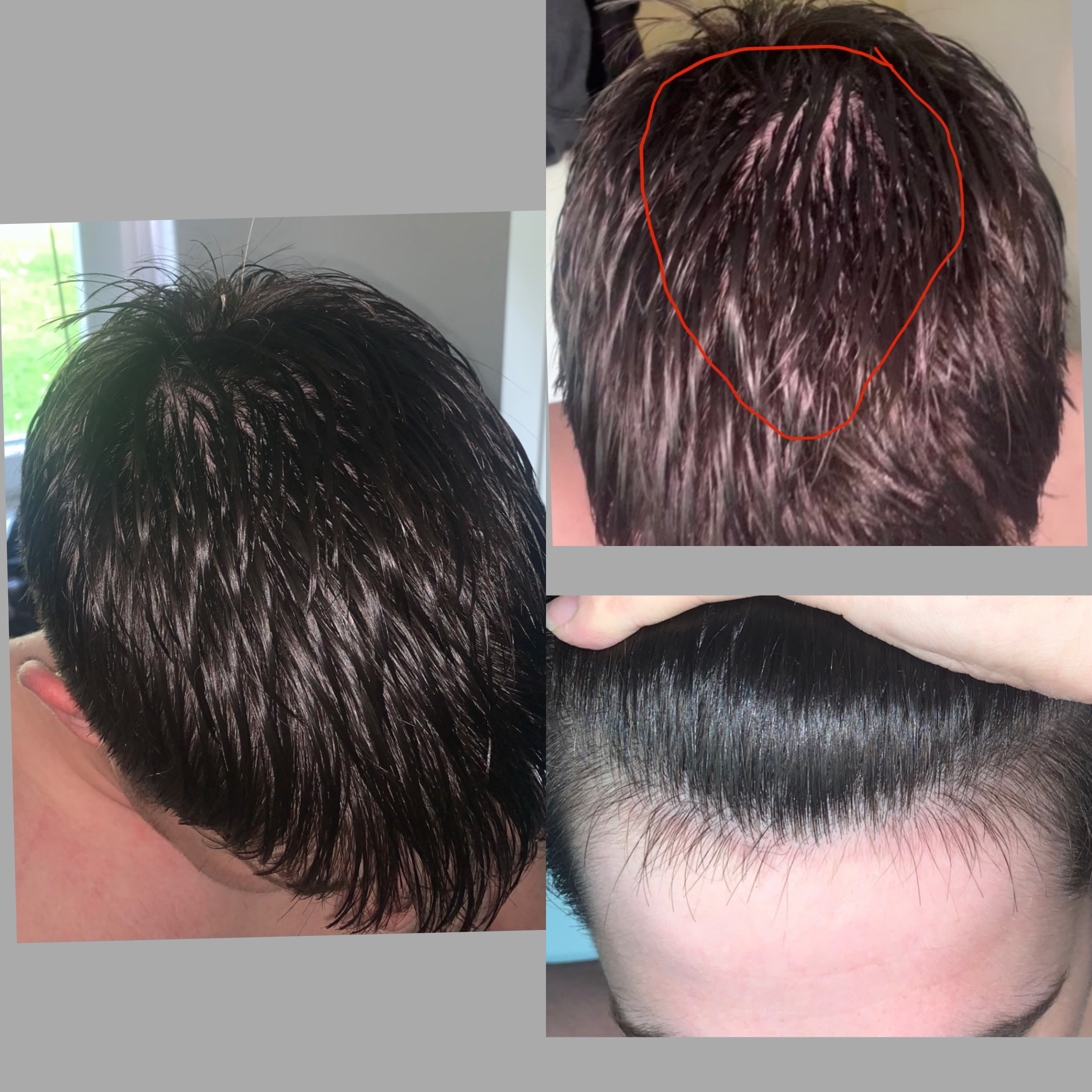 Hab hier mal noch paar Bilder. Ich bin mir zu 99% sicher, dass ich aga habe. Aber bei mir ist der Ursprung quasi am hinteren linken Kopf und von da an frisst es sich durch. Man kann auch schön die Miniaturisierung in dem Bereich sehen. Ich füg aber auch mal noch ein Bild aus dem Jahr 2018 hinzu, die Qualität ist zwar extrem schlecht, aber dieses ‚Loch‘ habe ich da hinten anscheinend schon immer.