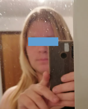 farblose Augenbrauen und ganz helles Kopfhaar vorne