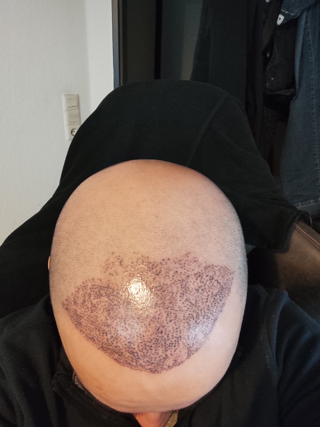 Die Haut ist noch gerötet, aber ich finde die Pigmente etwas groß. Aber ich urteile erst wenn alles abgeheilt ist. Die Haarlinie ist noch nicht final. Wie findet ihr bisjetzt das Ergebnis?