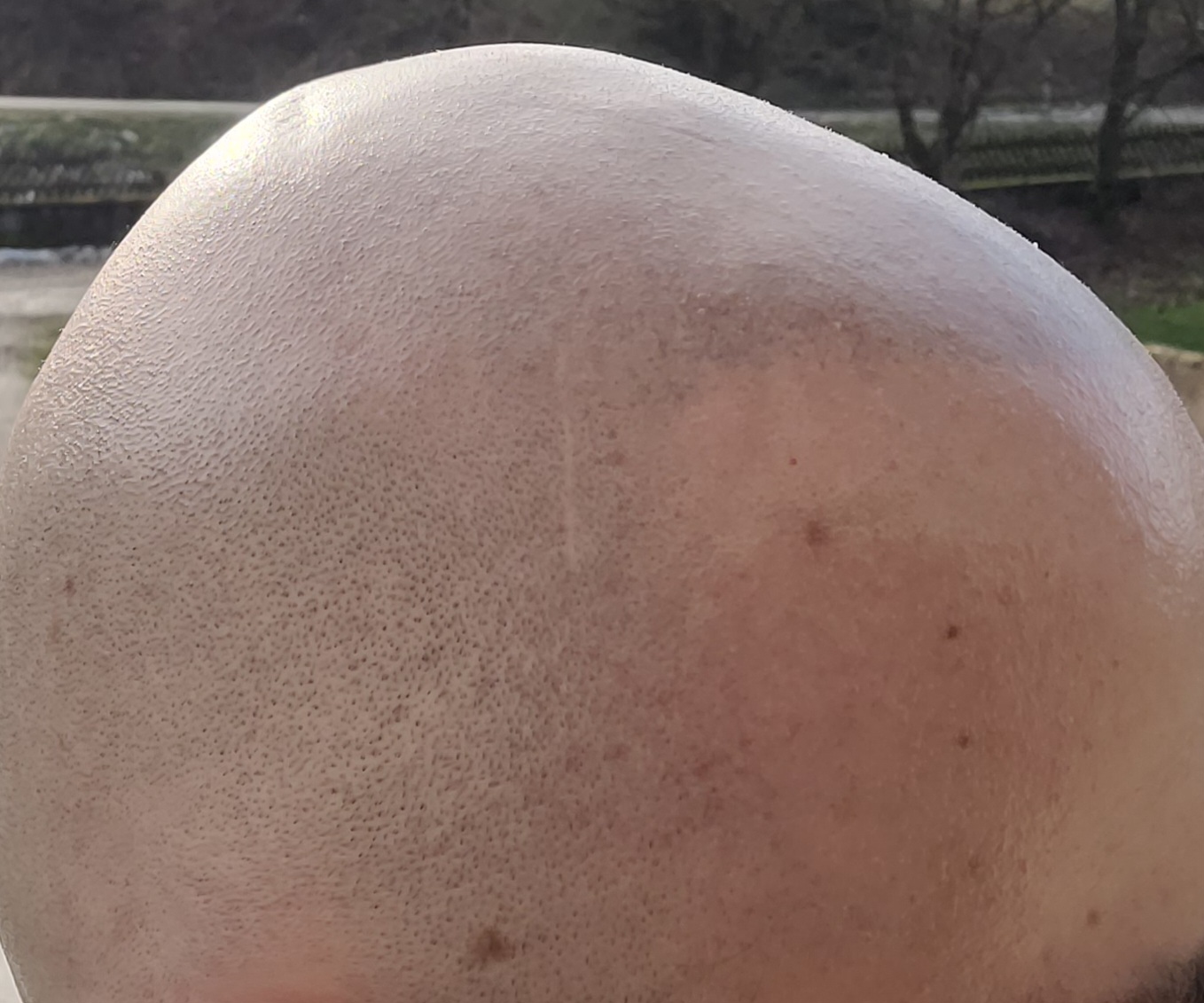 Habe gestern Abend auf Null rasiert. Selbst hier sieht man bei starker Sonneneinstrahlung bereits die echten Stoppeln besser als die Pigmentierung (Bilder von gerade eben). Ist zwar ein krasses Beispiel da der Unterschied normal nicht so raus kommt aber wie schaut das dann erst aus wenn man ne Woche nicht rasiert? Man muss dazu sagen, dass meine Auffrischung auch schon wieder 2,5 Jahre her ist. Die Pigmente verlieren mit der Zeit an Schärfe.