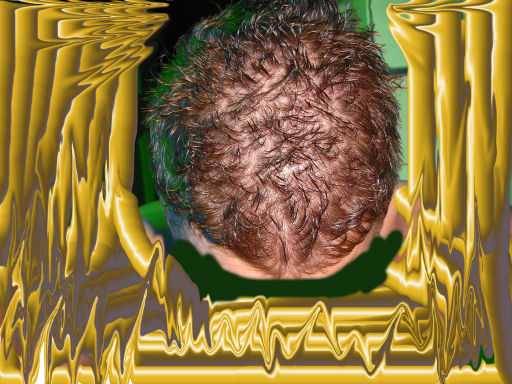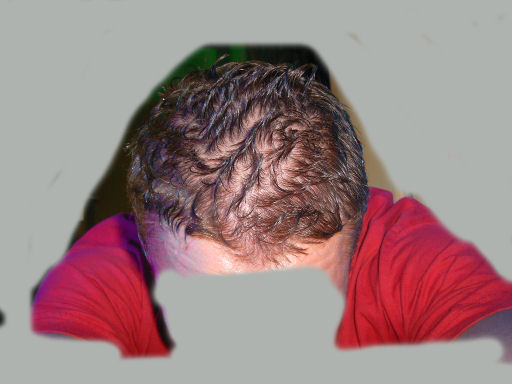 ...wenn ich ziemlich kurze haare habe und sie sind nass, dann sieht man die ausdünnung am vorderkopf ...der rest ist okay, keine tonsur ...obwohl ich glaube, dass mein gesamter oberkopf nicht mehr ganz so dicht ist, wie vor 10-15 jahren